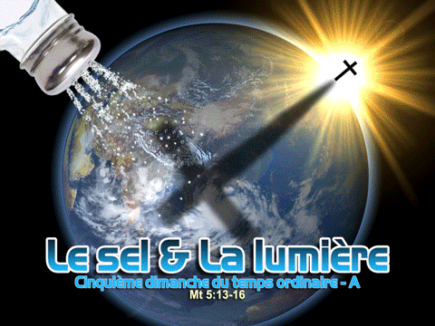 Khi ấy, Đức Giê-su nói với các môn đệ rằng: “Chính anh em là muối cho đời. Nhưng muối mà nhạt đi, thì lấy gì muối nó cho mặn lại? Nó đã thành vô dụng, thì chỉ còn việc quăng ra ngoài cho người ta chà đạp thôi. Chính anh em là ánh sáng cho trần gian. Một thành xây trên núi không tài nào che giấu được. Cũng chẳng có ai thắp đèn lên rồi lại đặt bên dưới cái thùng, nhưng đặt trên đế, và nó soi sáng cho mọi người trong nhà. Cũng vậy, ánh sáng của anh em phải chiếu giãi trước mặt thiên hạ, để họ thấy những công việc tốt đẹp anh em làm, mà tôn vinh Cha của anh em, Đấng ngự trên trời.”