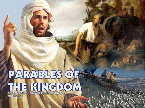 Hôm ấy, Đức Giê-su kể cho dân chúng dụ ngôn này: “Nước trời giống như chuyện kho báu chôn giấu trong ruộng. Có người kia gặp được thì liền chôn giấu lại, rồi vui mừng đi bán tất cả những gì mình có mà mua thửa ruộng ấy. Nước Trời lại cũng giống như chuyện một thương gia đi tìm ngọc đẹp. Tìm được một viên ngọc quý, ông ta ra đi, bán tất cả những gì mình có mà mua viên ngọc ấy. Nước Trời lại còn giống như chuyện chiếc lưới thả xuống biển, gom được đủ thứ cá. Khi lưới đầy, người ta kéo lên bãi, rồi ngồi nhặt cá tốt cho vào giỏ, còn cá xấu thì vứt ra ngoài. Đến ngày tận thế, cũng sẽ xảy ra như vậy. Các thiên thần sẽ xuất hiện và tách biệt kẻ xấu ra khỏi hàng ngũ người công chính, rồi quăng chúng vào lò lửa. Ở đó, chúng sẽ phải khóc lóc nghiến răng. Anh em có hiểu tất cả những điều ấy không?” Họ đáp: “Thưa hiểu.” Người bảo họ: “Bởi vậy, bất cứ kinh sư nào đã được học hỏi về Nước Trời, thì cũng giống như chủ nhà kia lấy ra từ trong kho tàng của mình cả cái mới lẫn cái cũ.”