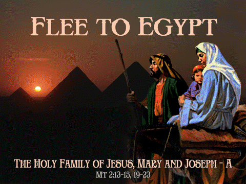 Khi các đạo sĩ đã đi rồi, thiên thần Chúa hiện ra với ông Giuse trong lúc ngủ và bảo ông: "Hãy thức dậy, đem Hài Nhi và mẹ Người trốn sang Ai-cập, và ở đó cho tới khi tôi báo lại ông, vì Hêrôđê sắp sửa tìm kiếm Hài Nhi để sát hại Người". Ông thức dậy, đem Hài Nhi và mẹ Người lên đường trốn sang Ai-cập đang lúc ban đêm. Ông ở lại đó cho tới khi Hêrôđê băng hà, hầu làm cho trọn điều Chúa dùng miệng tiên tri mà phán rằng: "Ta gọi con Ta ra khỏi Ai-cập".