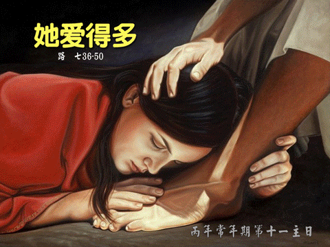 Một hôm, có người thuộc nhóm Pha-ri-sêu mời Đức Giê-su dùng bữa với mình. Đức Giê-su đến nhà người Pha-ri-sêu ấy và vào bàn ăn. Và kìa một phụ nữ vốn là người tội lỗi trong thành, biết được Người đang dùng bữa tại nhà ông Pha-ri-sêu, liền đem theo một bình bạch ngọc đựng dầu thơm. Chị đứng đằng sau, sát chân Người mà khóc, lấy nước mắt mà tưới ướt chân Người. Chị lấy tóc mình mà lau, rồi hôn chân Người và lấy dầu thơm mà đổ lên. Thấy vậy, ông Pha-ri-sêu đã mời Người liền nghĩ bụng rằng: "Nếu quả thật ông này là ngôn sứ, thì hẳn phải biết người đàn bà đang đụng vào mình là ai, là thứ người nào: một người tội lỗi!" Đức Giê-su lên tiếng bảo ông: "Này ông Si-mon, tôi có điều muốn nói với ông!" Ông ấy thưa: "Dạ, xin Thầy cứ nói". Đức Giê-su nói: "Một chủ nợ kia có hai con nợ: một người nợ năm trăm quan tiền, một người năm chục. Vì họ không có gì để trả, nên chủ nợ đã thương tình tha cho cả hai. Vậy trong hai người đó, ai mến chủ nợ hơn?" Ông Si-mon đáp: "Tôi thiết tưởng là người đã được tha nhiều hơn". Đức Giê-su bảo: "Ông xét đúng lắm". Rồi quay lại phía người phụ nữ, Người nói với ông Si-mon: "Ông thấy người phụ nữ này chứ? Tôi vào nhà ông: nước lã, ông cũng không đổ lên chân tôi, còn chị ấy đã lấy nước mắt tưới ướt chân tôi, rồi lấy tóc mình mà lau. Ông đã chẳng hôn tôi một cái, còn chị ấy từ lúc vào đây, đã không ngừng hôn chân tôi. Dầu ô-liu, ông cũng không đổ lên đầu tôi, còn chị ấy thì lấy dầu thơm mà đổ lên chân tôi. Vì thế, tôi nói cho ông hay: tội của chị rất nhiều, nhưng đã được tha, bằng cớ là chị đã yêu mến nhiều. Còn ai được tha ít thì yêu mến ít". Rồi Đức Giê-su nói với người phụ nữ: "Tội của chị đã được tha rồi". Bấy giờ những người đồng bàn liền nghĩ bụng: "Ông này là ai mà lại tha được cả tội?" Nhưng Đức Giê-su nói với người phụ nữ: "Lòng tin của chị đã cứu chị. Chị hãy đi bình an". Sau đó, Đức Giê-su rảo qua các thành phố, làng mạc, rao giảng và loan báo Tin Mừng Nước Thiên Chúa. Cùng đi với Người, có Nhóm Mười Hai và mấy người phụ nữ đã được Người trừ quỷ và chữa bệnh. Đó là bà Ma-ri-a gọi là Ma-ri-a Mác-đa-la, người đã được giải thoát khỏi bảy quỷ, bà Gio-an-na, vợ ông Khu-da quản lý của vua Hê-rô-đê, bà Su-san-na và nhiều bà khác nữa. Các bà này đã lấy của cải mình mà giúp đỡ Đức Giê-su và các môn đệ.